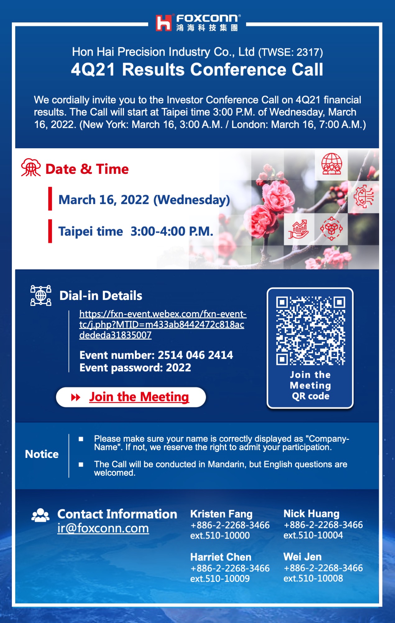 Investor Conference Call on FY21 Fourth Quarter Financial Results